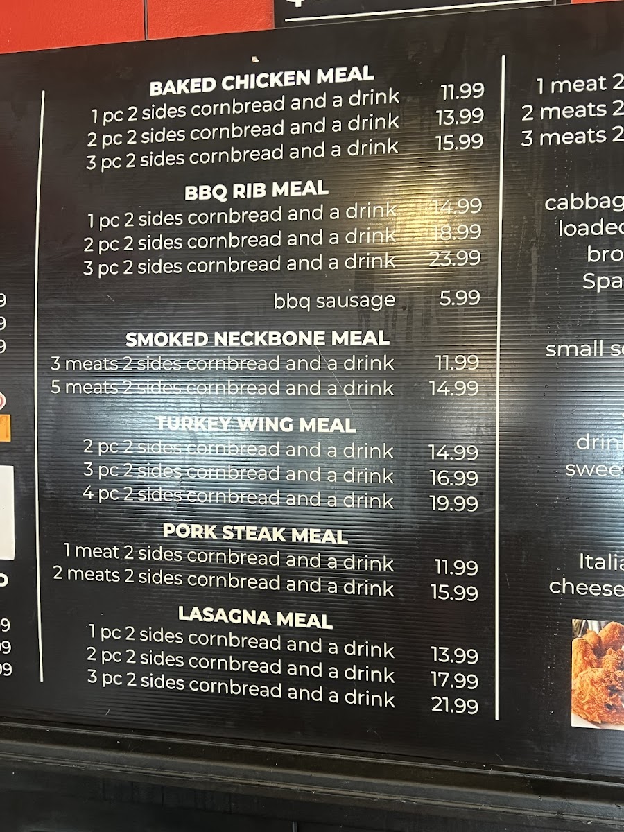 Big Daddys Soul Food To Go offers a menu rooted in hearty, home-style Southern cooking with a welcoming, casual atmosphere. The self-service line encourages a relaxed pace, perfect for those looking to enjoy comforting meals without fuss. Whether you’re stopping by for a quick lunch or a satisfying dinner, the menu provides familiar soul food favorites that bring a sense of warmth and tradition to every bite.