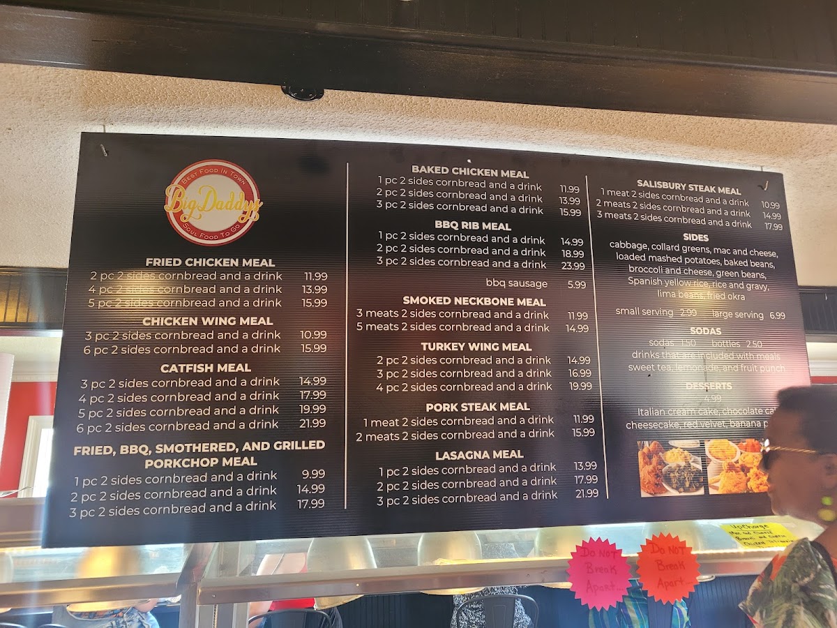 Big Daddys Soul Food To Go Menu